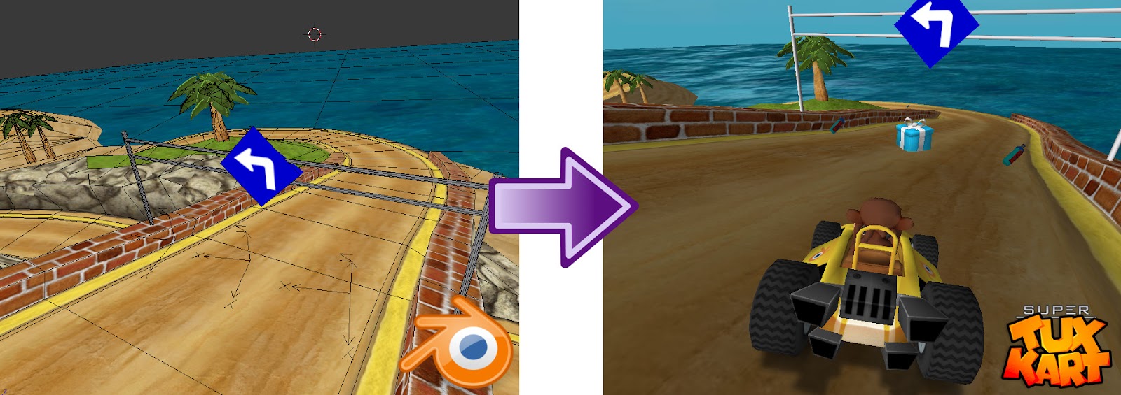 Many non-graphical pieces of information (metadata) need to be provided. In our racing game SuperTuxKart (STK) for example, map models need further detail:- Kart starting positions.
